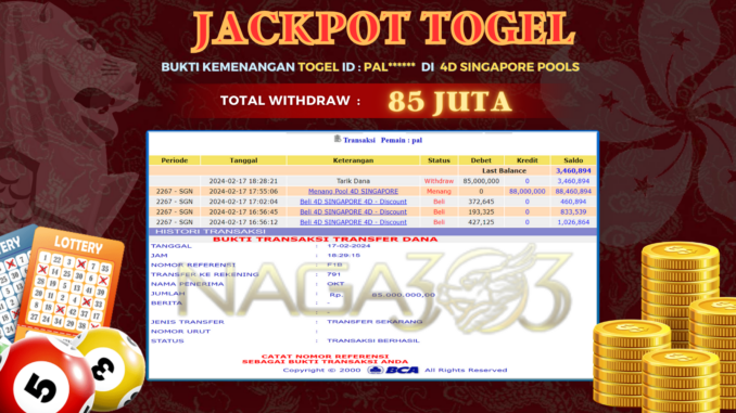 MEMBER NAGA303 MENERIMA PELUNASAN KEMENANGAN JACKPOT TOGEL di SINGAPORE POOLS Rp 85.000.000,- LUNAS