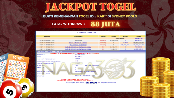 NAGA303 JACKPOT TOGEL DI SYDNEY POOLS Rp 88.000.000,- LUNAS