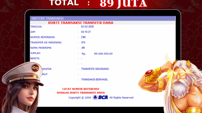 NAGA303 mengucapkan selamat kepada user id : GIO*** yang telah berhasil mendapatkan jackpot pada permainan SLOT DI POWER OF ODIN 1000. Kemenangan sebesar Rp 89.000.000,-. telah dibayarkan LUNAS oleh pihak naga303 kepada pemilik user id setelah yang bersangkutan mengisi formulir withdraw. Proses pencairan dana berlangsung sangat cepat hanya dalam waktu 6-11 menit sudah berada dalam rekening pemilik user id. Bukti transfer yang dapat anda lihat adalah bukti SAH / VALID yang langsung di dapatkan melalui bukti transaksi dari Bank yang digunakan untuk pengiriman dana pada rekening pemilik user id. Terima kasih kami sampaikan kepada para pengguna setia naga303 yang telah menggunakan situs kami, sebagai Bandar Terpercaya yang pastinya membayar semua kemenangan member hingga lunas. Apakah Naga303 PENIPU ? Reputasi “NAGA303 TERPERCAYA” sudah sangat melekat. puluhan hingga ratusan ribu pengguna setia NAGA303 tetap menggunakan situs terbesar dan terbaik di Indonesia ini. Hapus rasa was-was dan khawatir anda, kemenangan anda berapapun PASTI dibayarkan hingga lunas.
