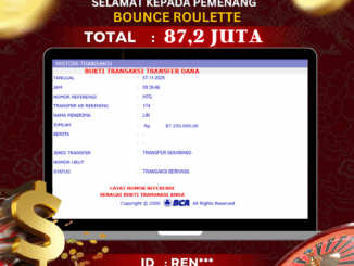 NAGA303 JACKPOT LIVE CASINO DI BOUNCE ROULETTE Rp 87.250.000,- LUNAS